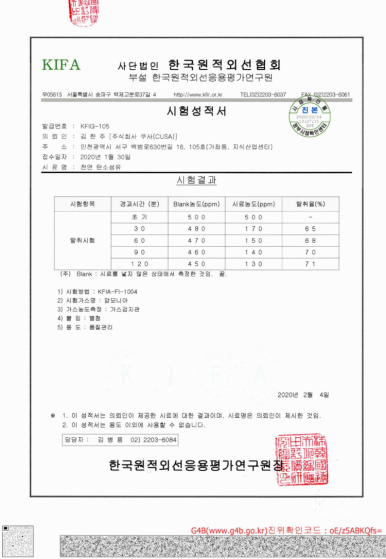 쿠사우나는 불연성 시험과 가스 유해성 시험 인증으로