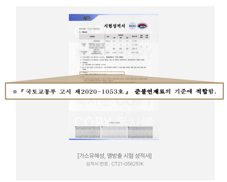 쿠사우나는 불연성 시험과 가스 유해성 시험 인증으로