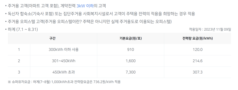 또한 다른 요금과 달리 유일하게 3단계의 누진제가 적용됩니다.