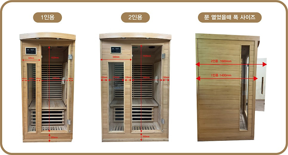 ▶ 건식 사우나 1인용, 2인용 상세 사이즈
