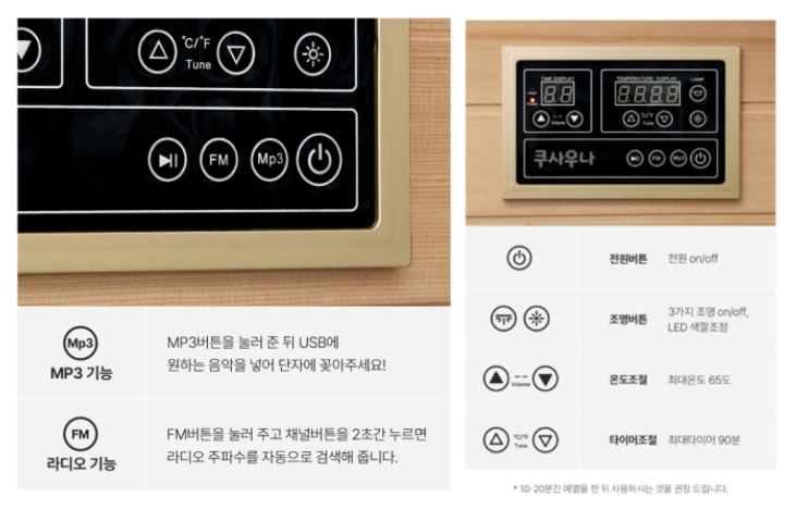 타이머 조절 기능으로 원하는 시간 동안 사우나를