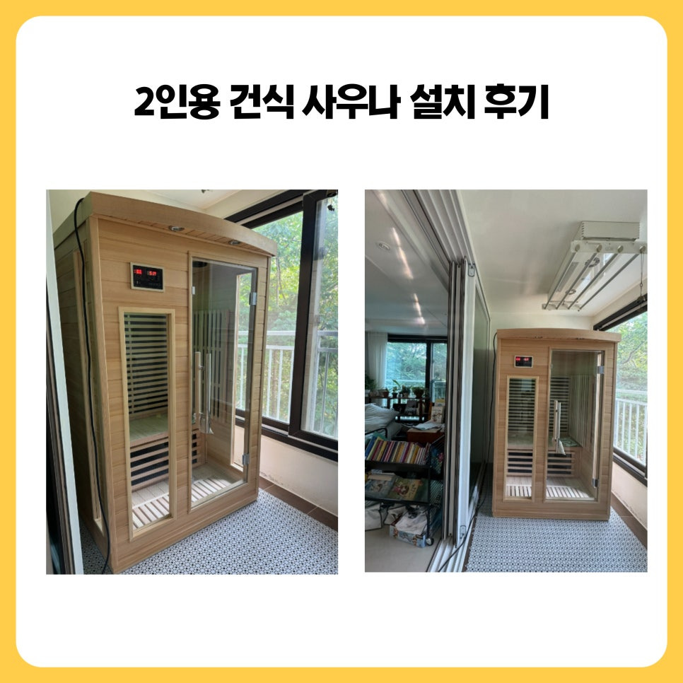 | 다양한 편리기능 있는 2인용 홈사우나 설치 후기 (6) | 2024.10.14 |