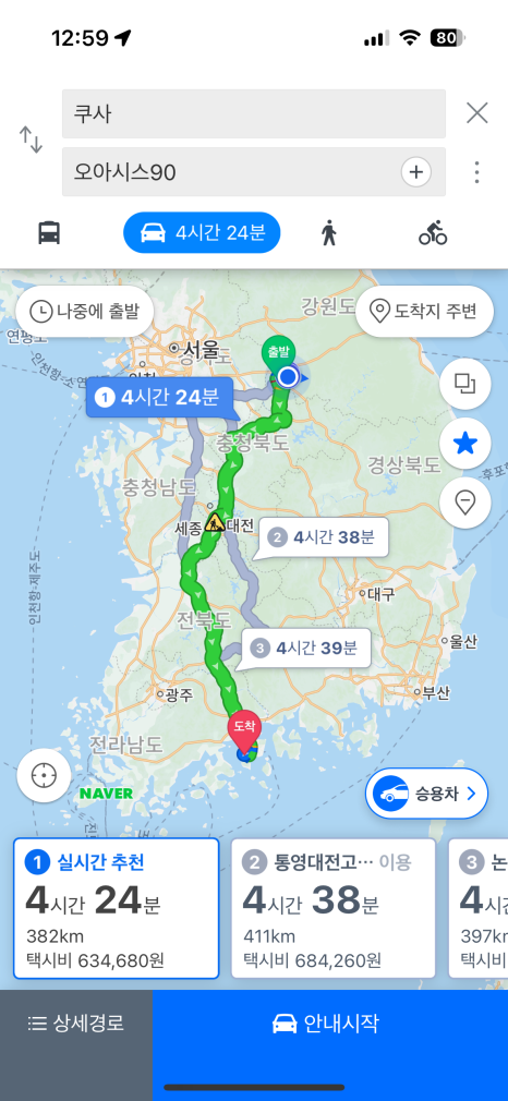 쿠사에서 오아시스 90 펜션까지는