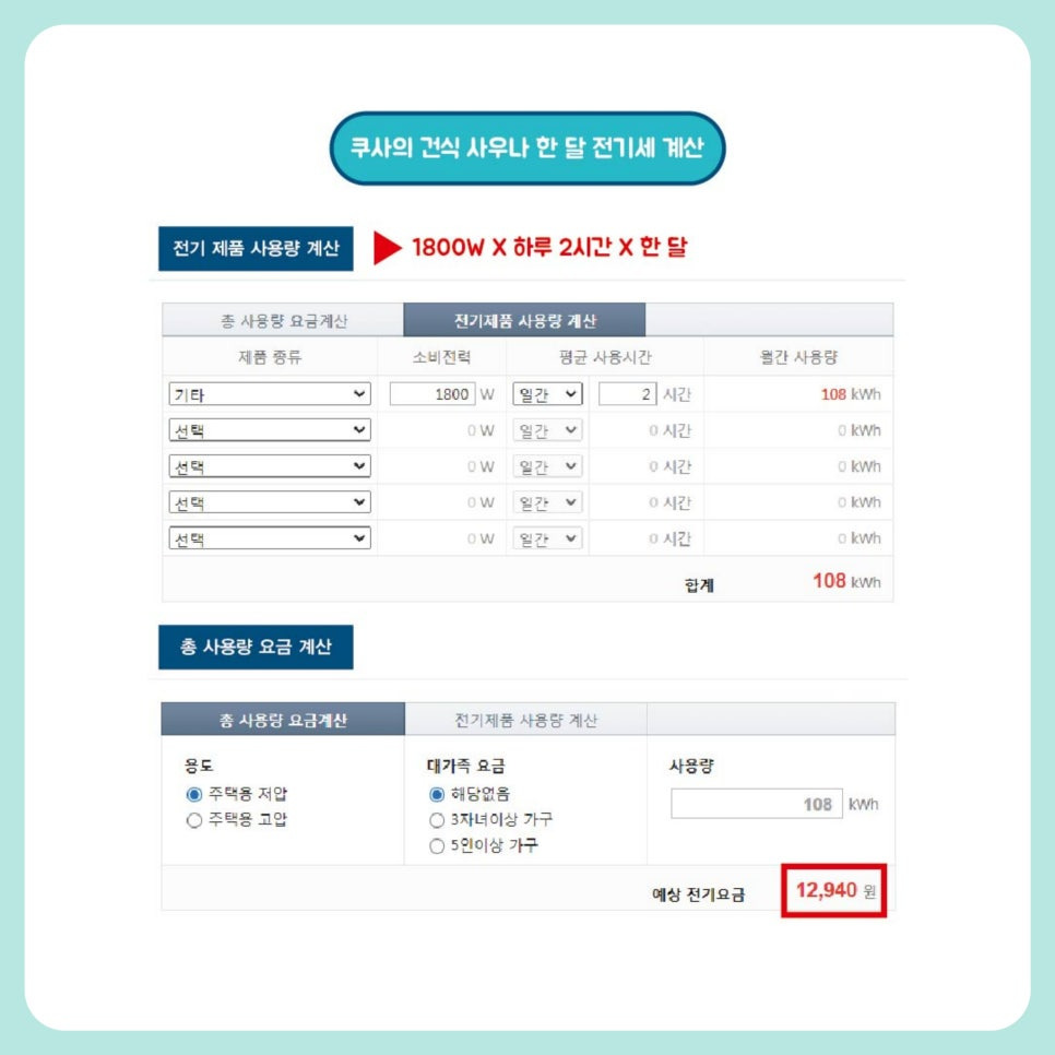 쿠사우나는 1800W의 낮은 전력을 사용하기 때문에