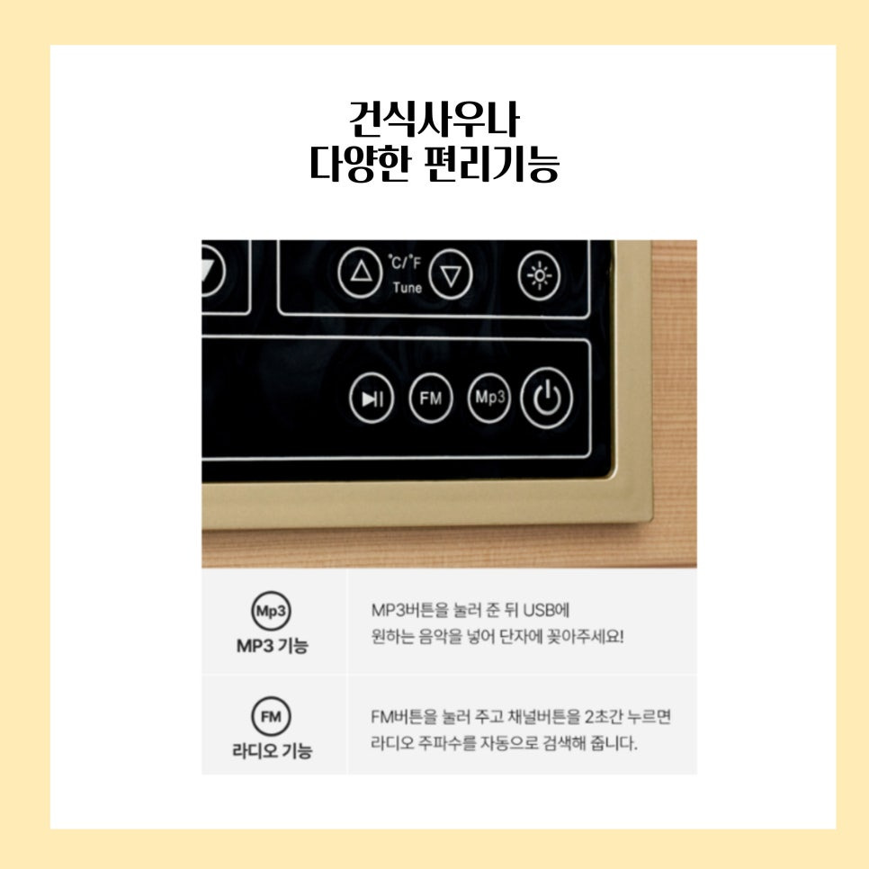 실시간 방송을 들으며 사우나를 즐길 수 있습니다.