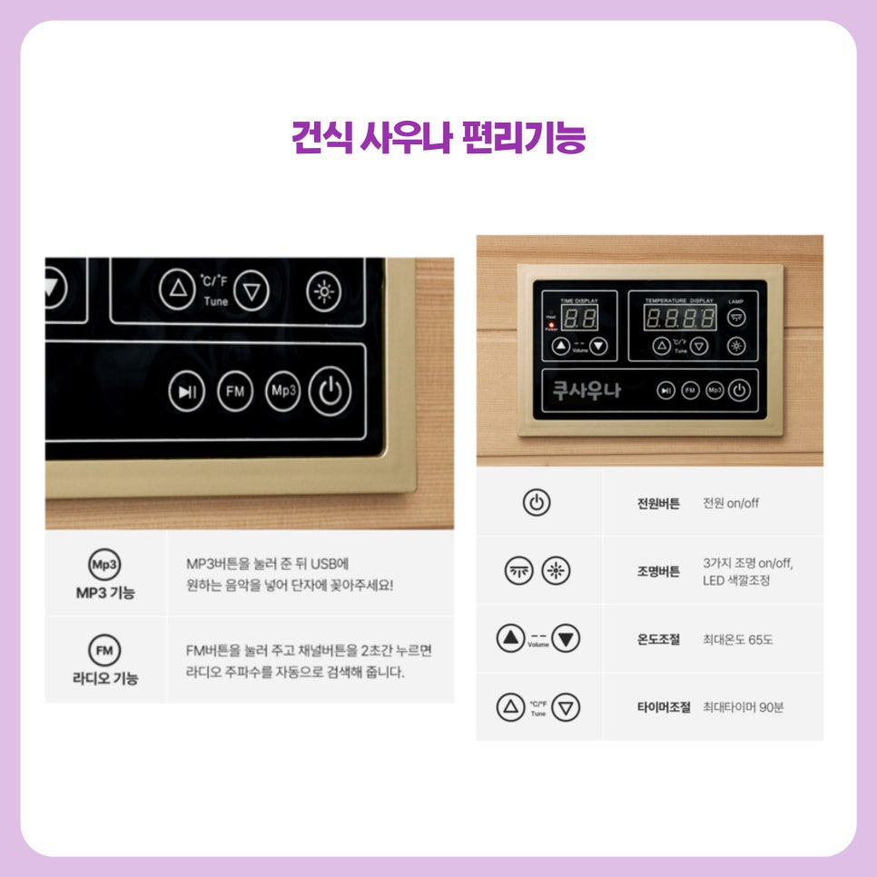 쿠사 건식 사우나에는 MP3, 라디오, 블루투스 기능이