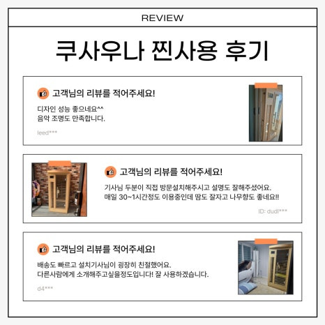 고객님들께서는 쿠사우나의 뛰어난 성능과 편리함,
