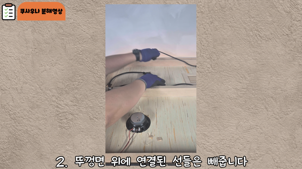 2. 뚜껑면 위에 연결된 선들을 빼줍니다.