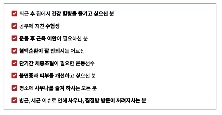 일반 찜질방이나 가정용 사우나 같은 경우에