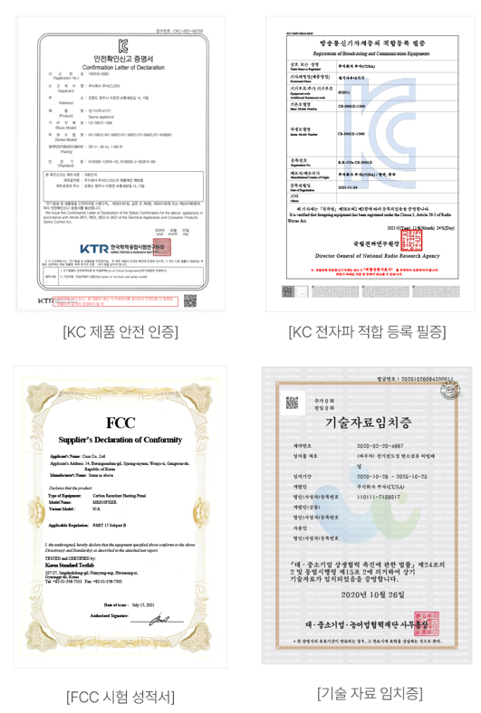 검증기관에서 검사 시험 및 인증받은 제품으로
