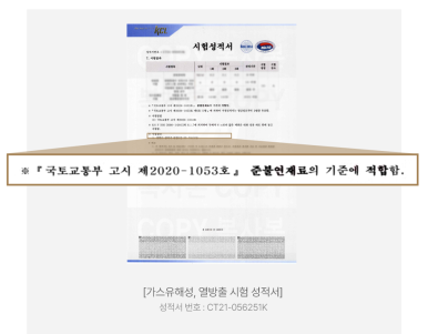 쿠사우나는 불연성 시험과 가스 유해성 시험 인증으로
